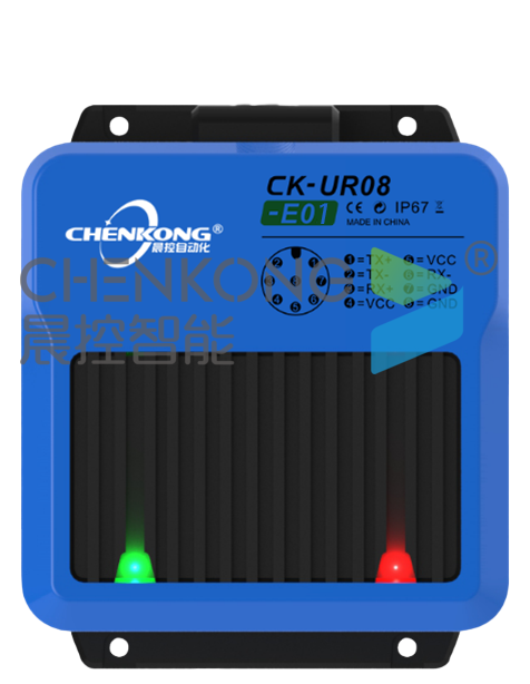 CK-UR08是天线一体式超高频读写器头,工作频率为920MHz~925MHz,符合EPC Global Class l Gen 2/IS0-18000-6C标准,最大输出功率26dBm。读卡器支持标准工业通讯协议ModbusRTU,ModbusTCP,ProfiNet,EtherNet/IP等多种协议,方便用户通过集成到PLC等控制系统中。读卡器内部集成了射频部分通信协议,用户只需通过接口接收数据便能完成对标签的读取操作,而无需理解复杂的射频通信协议。读写器具有识别速度快、准确率高、识别距离适中、组网方便等特点,适合应用于智能产线数据采集,信息读取等领域。