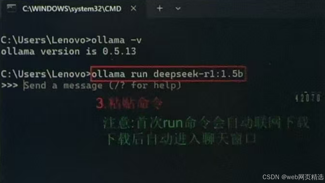 命令:ollama run deepseek-r1:1.5b