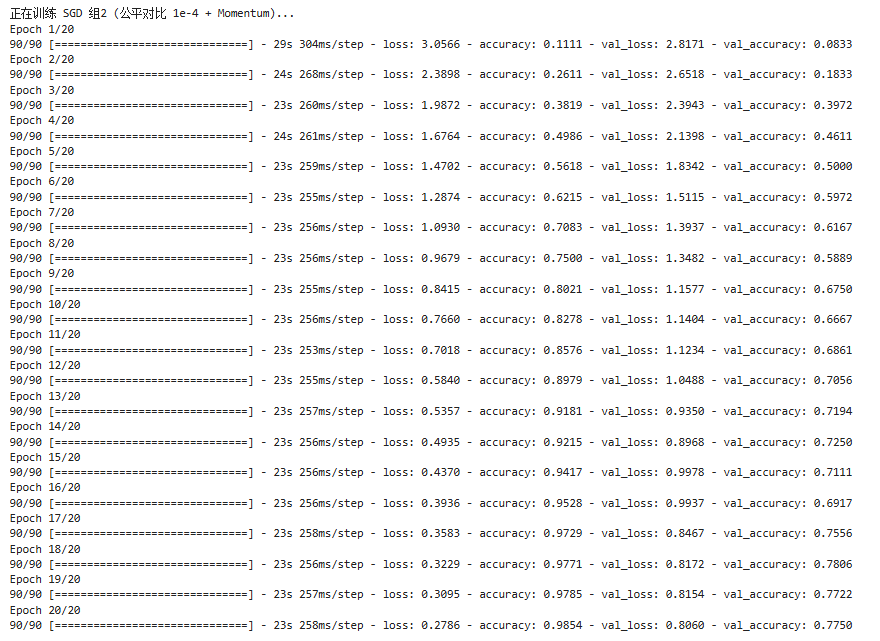 print("\n正在训练 SGD 组2 (公平对比 1e-4 + Momentum)...")