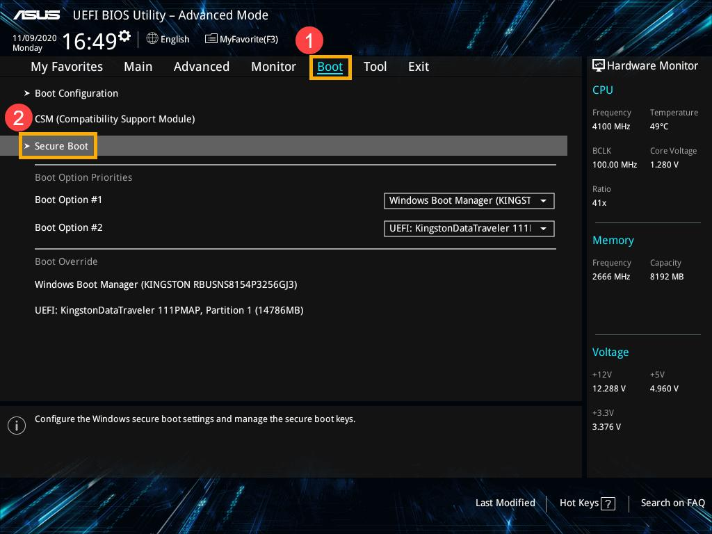 设置 U 盘为第一启动项,这里值得注意的是:Secure Boot 问题:如果主板开启了 Secure Boot,进入BIOS界面,找到Secure Boot设置成disabled。这一步大部分是在用引导U盘装双系统的时候更改。我的还有些不同,主板要先把 OS Type 改成 Other OS 才能关,这个如果不关,后期装显卡驱动会弹窗让你输入密码,很麻烦。Fast Boot Disable(禁用) 避免启动时跳过 U 盘