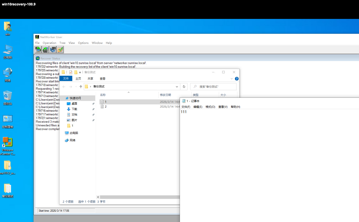 14.在隔离环境中新找一台win10安装networker client 提供恢复环境。