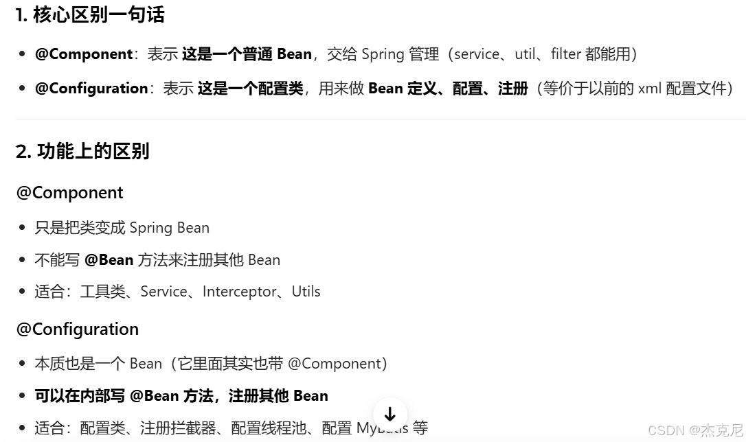 问题:@Configuration和@component区别?