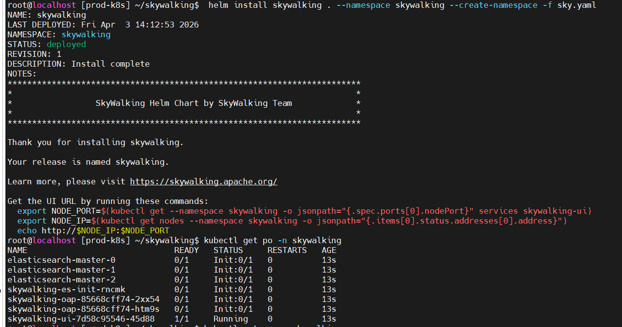 helm install skywalking . --namespace skywalking --create-namespace -f sky.yaml