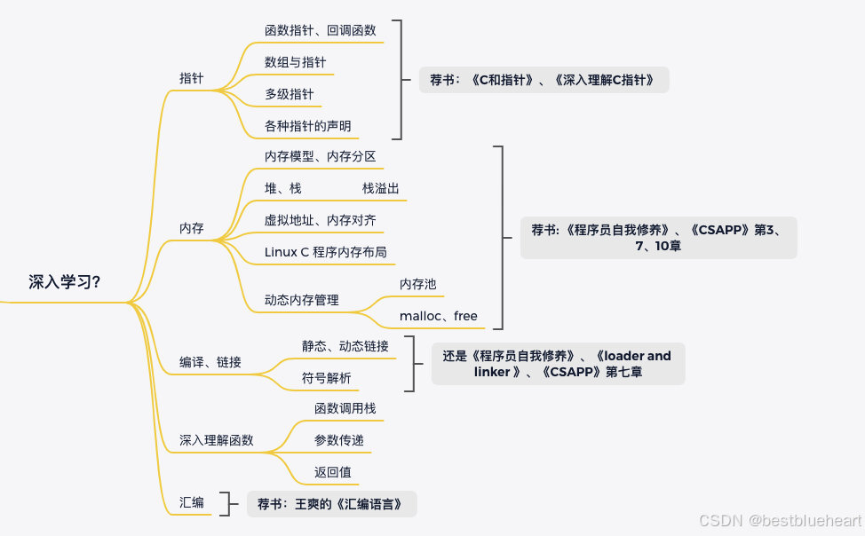 行了,胡扯结束,于此处给出一条将C语言进行系统学习的路线吧: