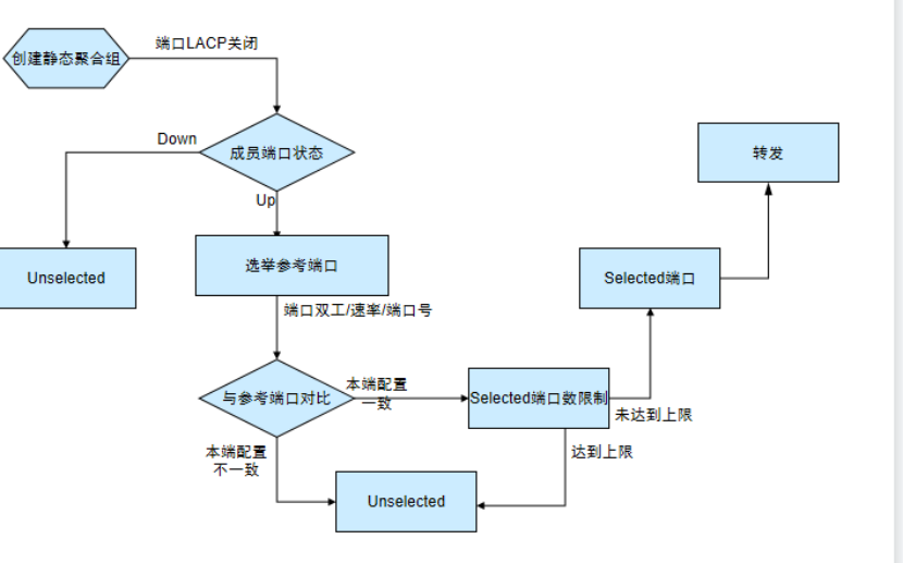 (3)端口属性配置:包括速率、双工模式、链路状态(UP/DOWN)这三项配置,参考端口选举,会影响成员端口是否被选中