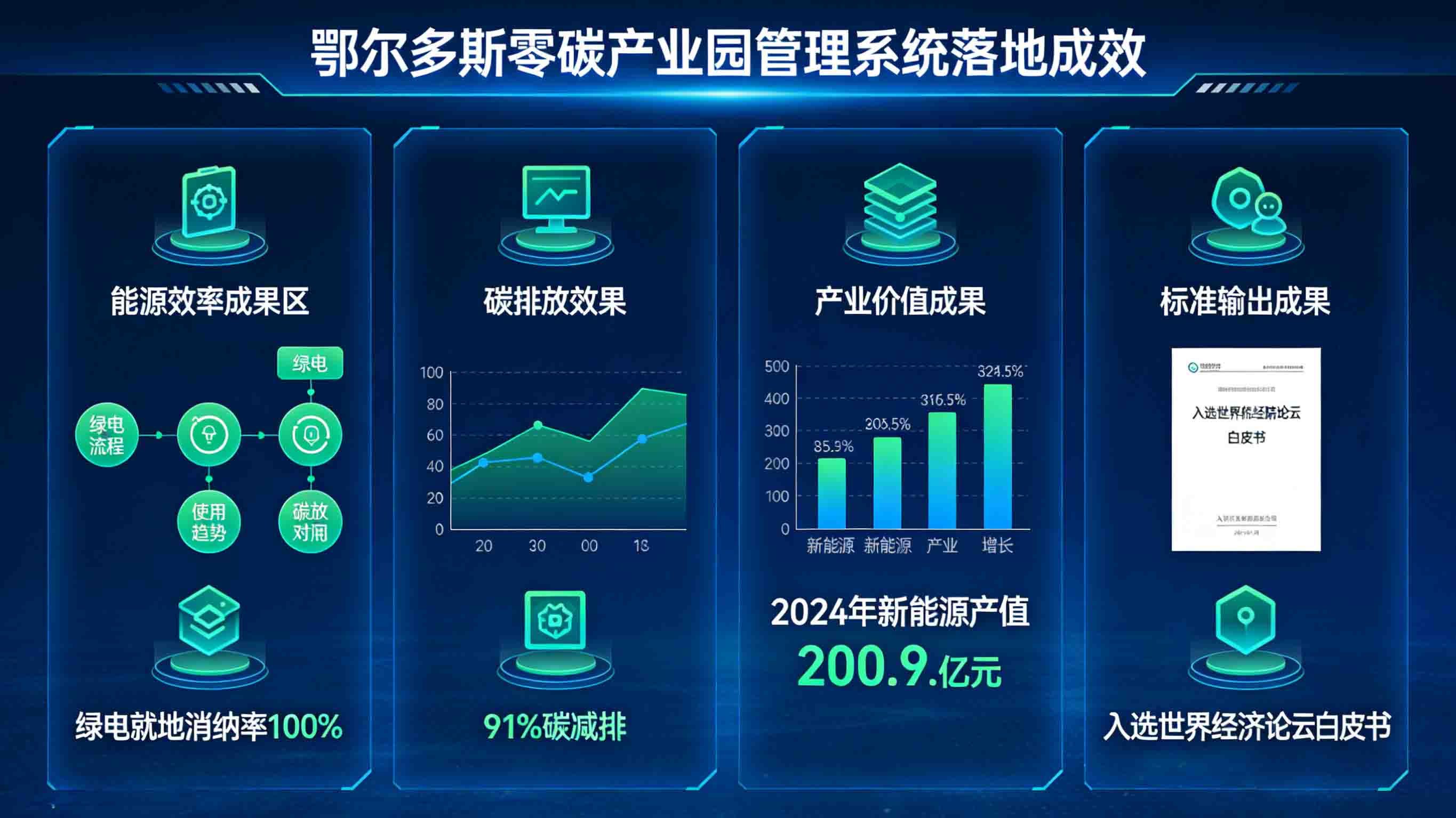- 标准输出 :相关模式入选世界经济论坛白皮书,为全球零碳园区建设提供 "鄂尔多斯方案"。