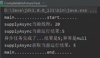 System.out.println("supplyAsync当前运行结果:" + i);