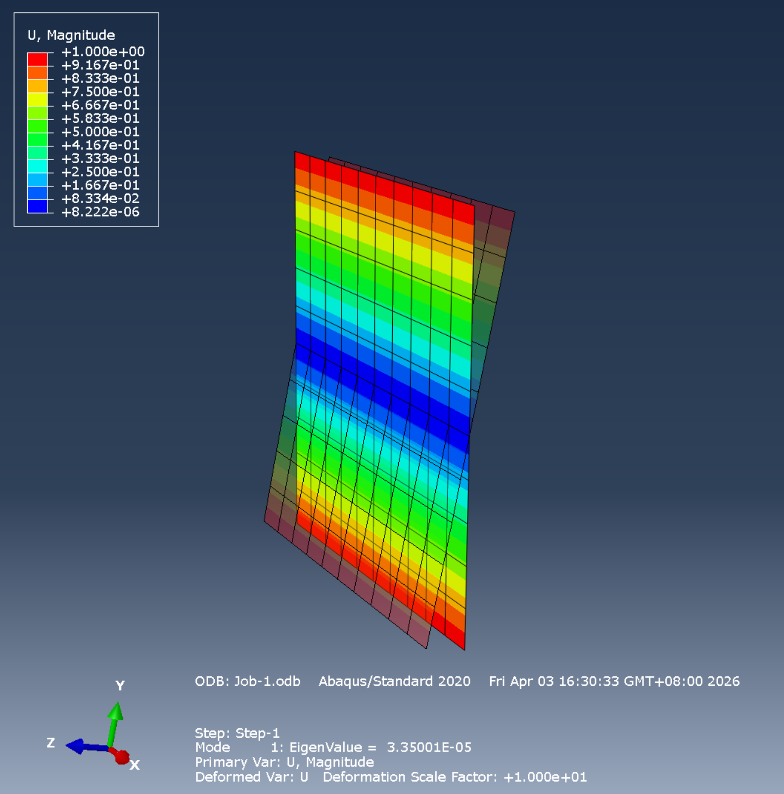 屈曲分析,不同模态下结果都有,前两个mode接近0,后续的mode具有正常数值