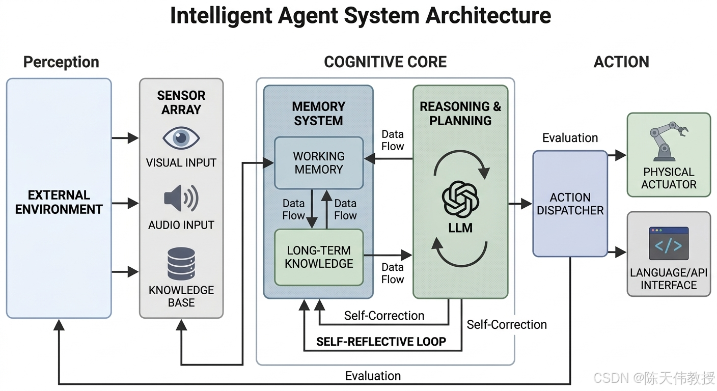 智能体架构的一个前沿研究方向是"自进化"(Self-Evolution),即智能体能够根据任务反馈和执行轨迹,自主优化其推理策略、工具集或协作协议,而无需人工干预或模型权重的重新训练 32。这种能力使智能体能够从"反射型"系统向"持续学习型"系统演进。