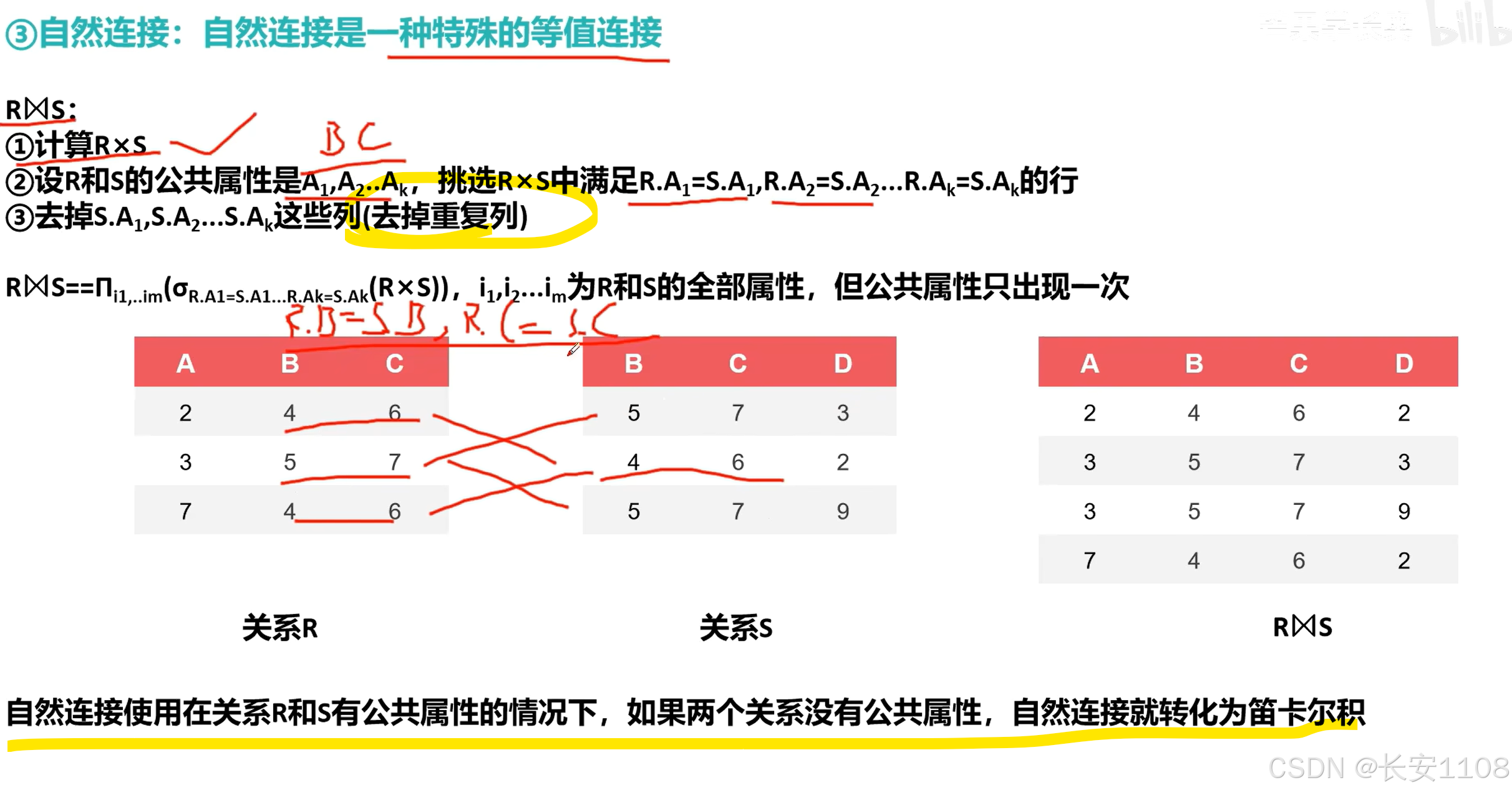 如,RXS 2=1,就是笛卡尔积中,左表的第二列 等于 右表的第一列,满足这样的元组组成新表
