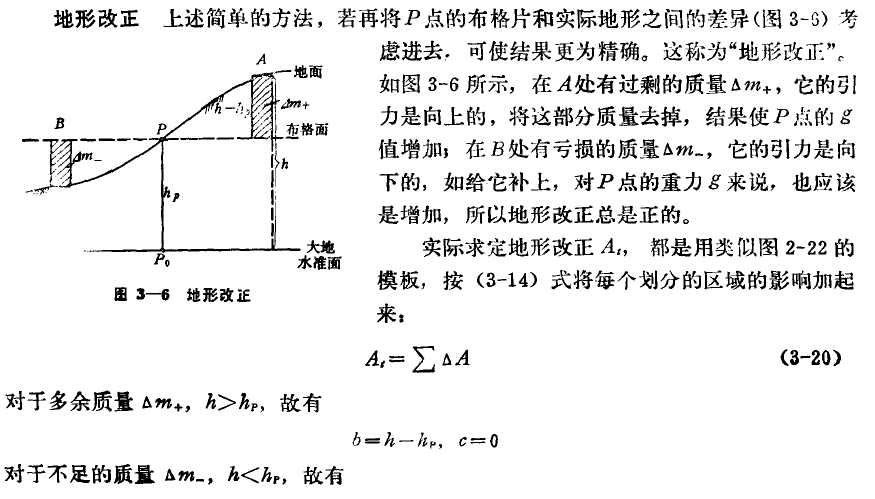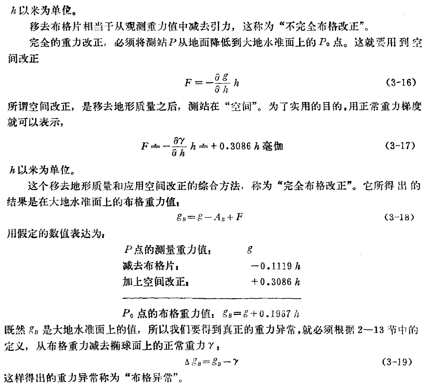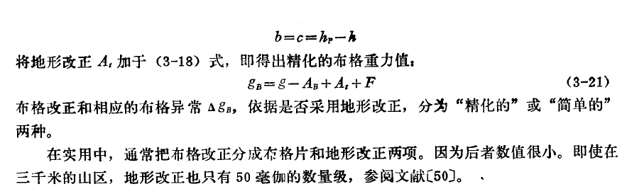 (或者更直观地说:观测值 -> 减去正常场值 -> 加上自由空间校正 -> 减去中间层校正 -> 加上地形校正)