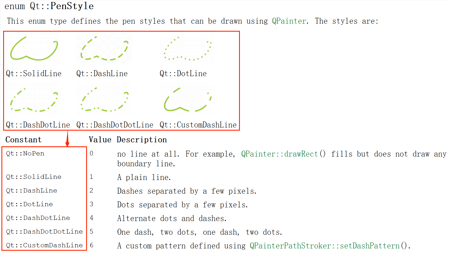 painter.setPen(QPen(Qt::red));