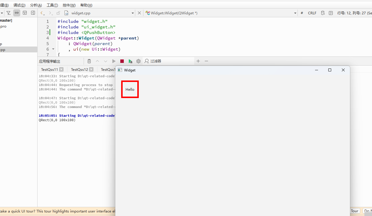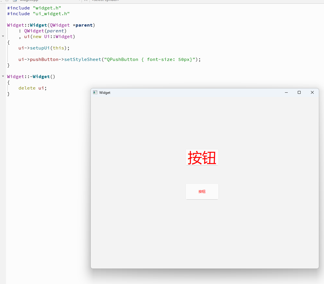 编写 widget.cpp, 给第⼀个按钮设置字体大小