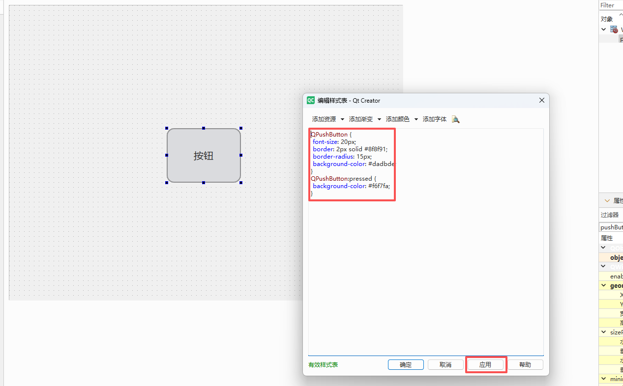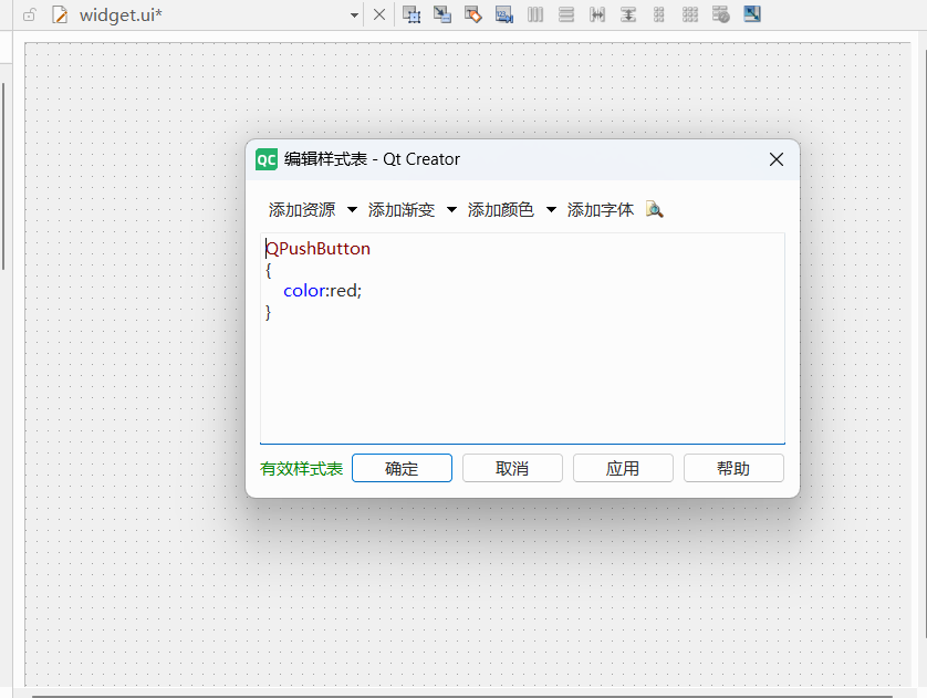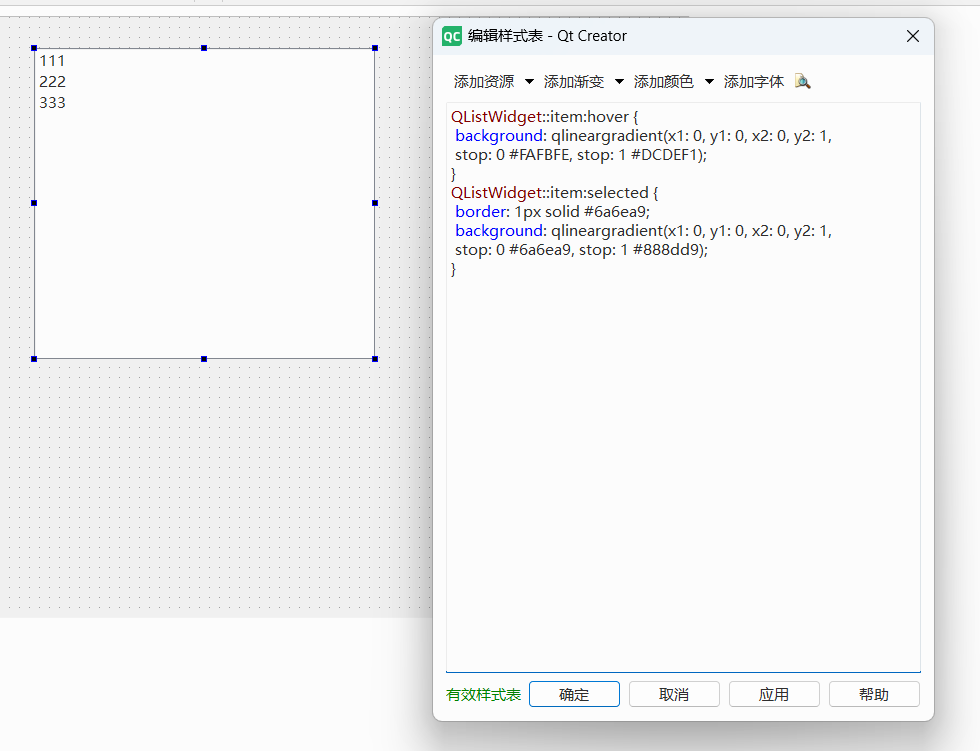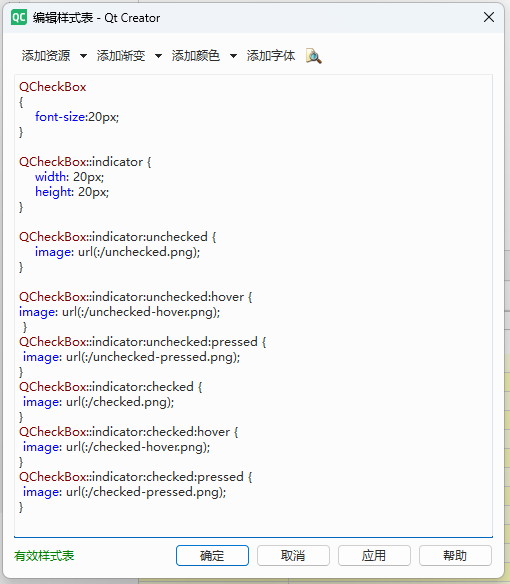 使用Qt Creator 打开 style.qss ,编写内容