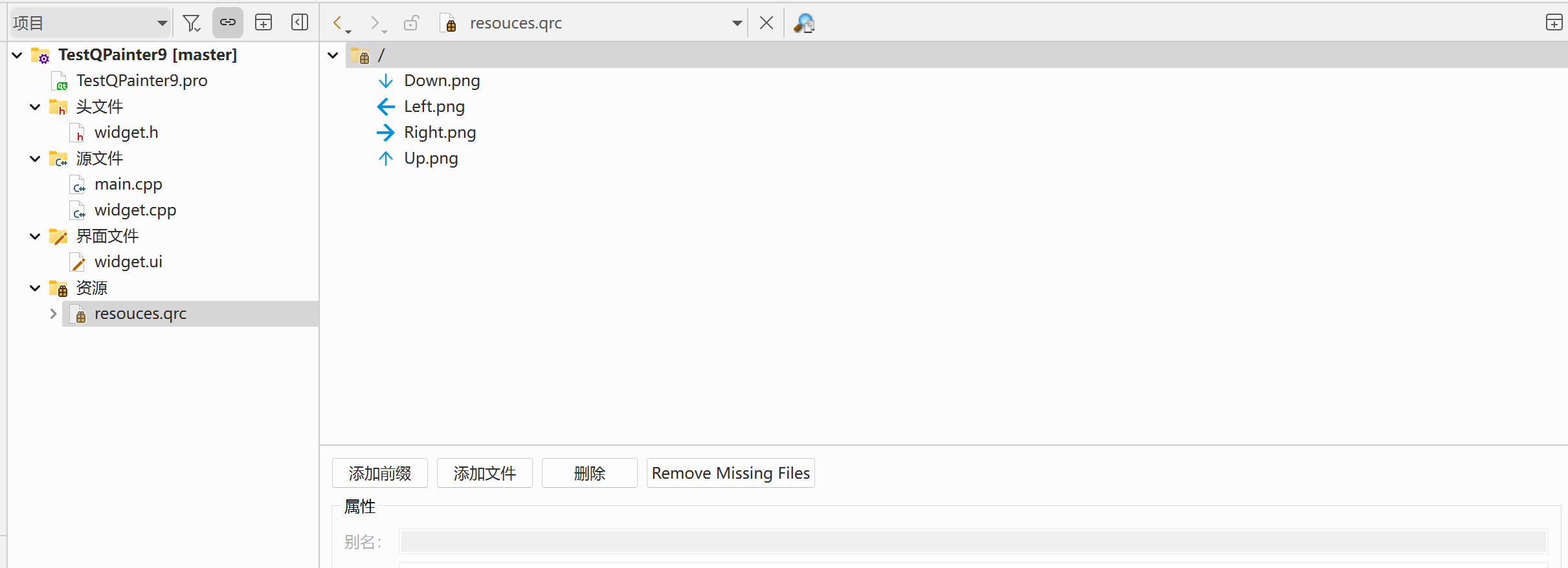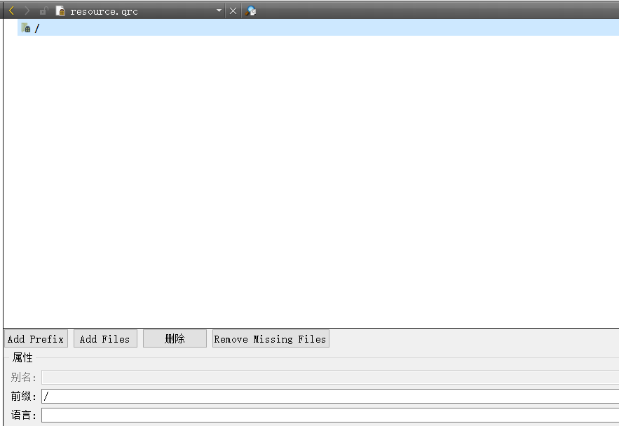 创建 resource.qrc ⽂件, 并设定前缀为 / .