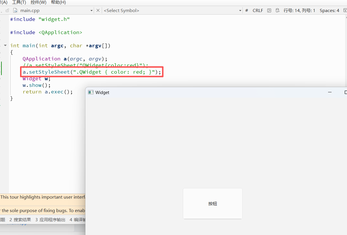 编写 main.cpp, 设置全局样式, 把按钮⽂本设置为红色