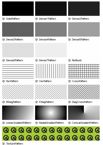 前图的代码中我们是使用QWidget 作为绘图设备. 在 Qt 中还存在下列三个比较特殊的绘图设备. 此处我们也简要介绍.