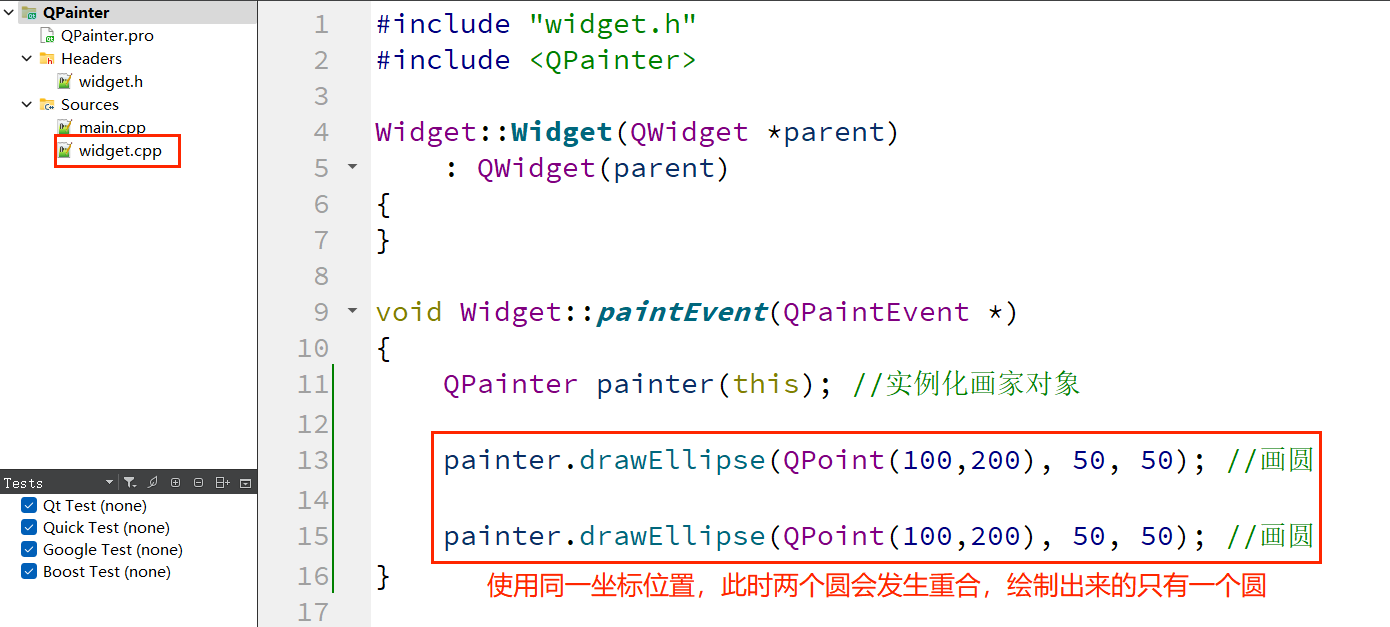 painter.drawEllipse(QPoint(100,100),100,100);