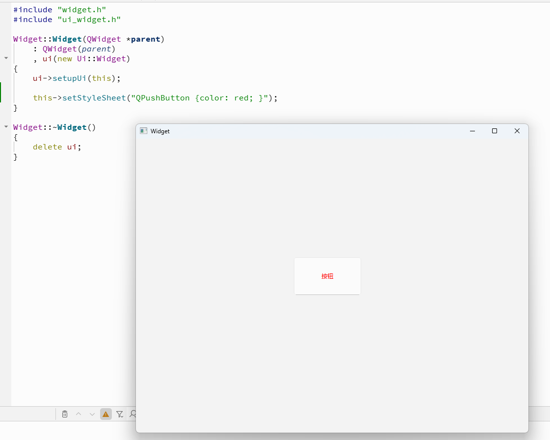 修改 widget.cpp, 这次我们不再给按钮设置样式, 而是给 Widget 设置样式(Widget 是