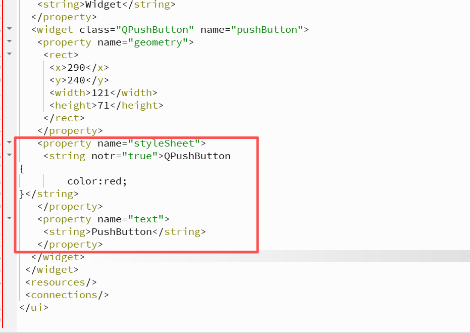 上述代码中, 我们是只针对这⼀个按钮通过 setStyleSheet方法设置的样式. 此时这个样式