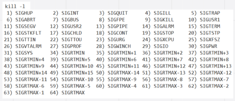- 指定发送某种信号的 kill 命令可以有多种写法,上面的命令还可以写成 kill -11 213784 ,11 是信号 SIGSEGV 的编号