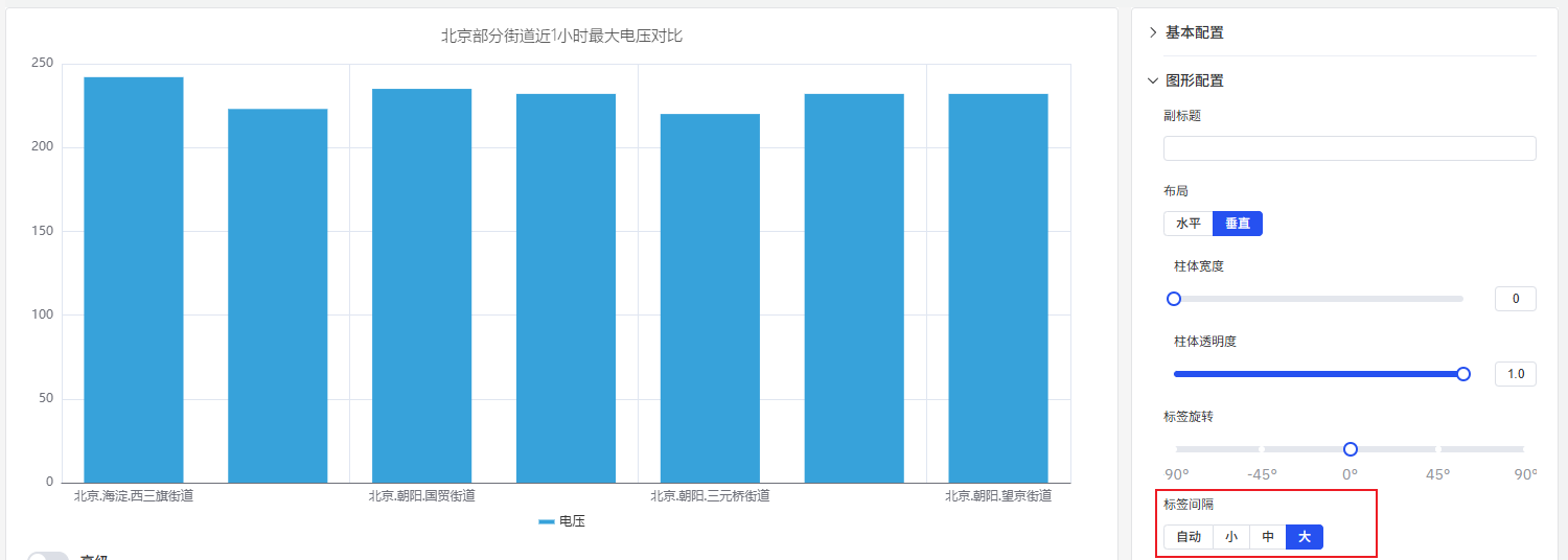 如果未设置柱体宽度,图表会根据整体宽度和柱体数量自动计算------这种自适应行为在大多数情况下效果良好。只有在固定分辨率屏幕上需要精确间距时才设置固定宽度。