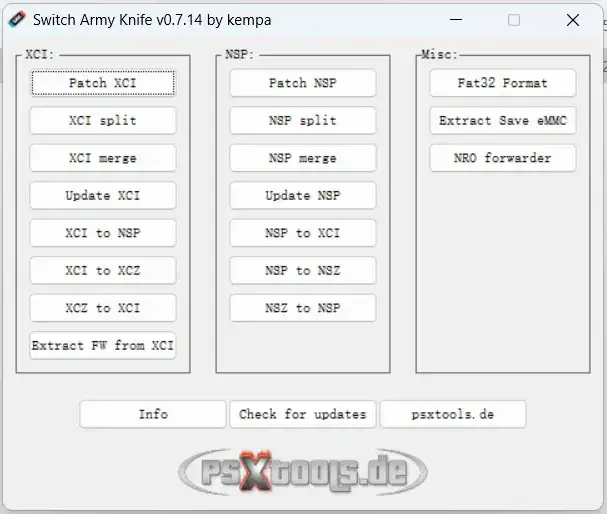 Switch Army Knife v0.7.14[SAK] xci nsp nsz转档工具,Eden/Yuzu暂不支持读取压缩格式的switch游戏主体或UPD (.xcz, .nsz),需要解压转档成.xci或.nsp用这个工具就可简单方便转档。