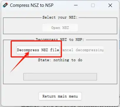 3.点击后显示如下界面,按照下面的提示打开NSZ文件,准备开始转换。