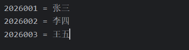 Value(值):与键相关联的具体数据,类似于学生的具体档案或字典里单词的解释。