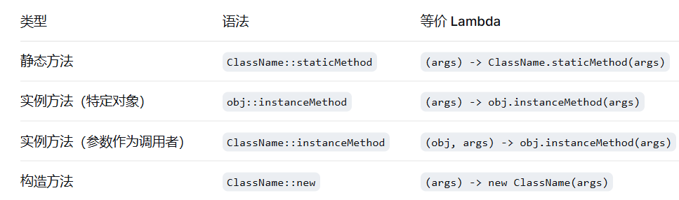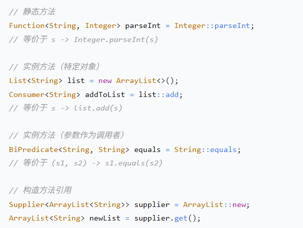 当 Lambda 体仅仅是调用一个已存在的方法时,可以用方法引用进一步简化。