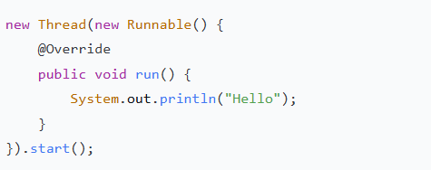 先看一个例子:我们想创建一个新线程,在控制台打印"Hello"。