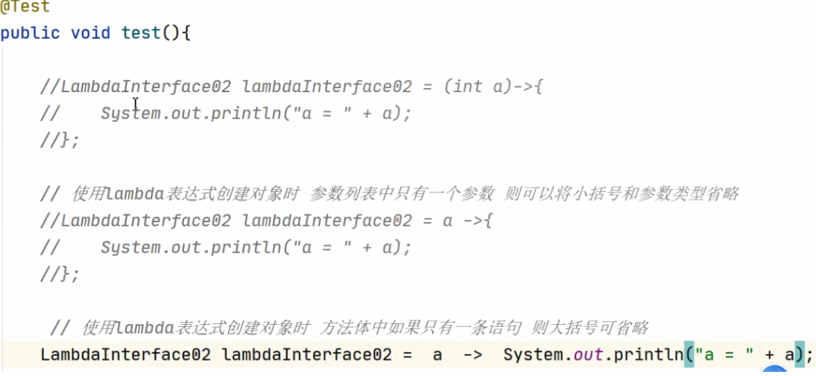 使用lambda表达式创建对象,接口只有一个抽象方法: