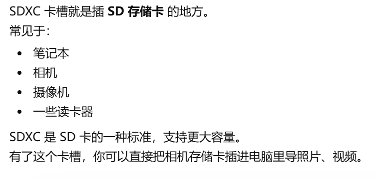 - [SDXC 卡槽 插 SD 存储卡 的地方](#SDXC 卡槽 插 SD 存储卡 的地方)