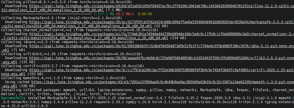 pip install torch==2.1.0+cu118 -f https://download.pytorch.org/whl/torch_stable.html torchvision==0.16.0+cu118