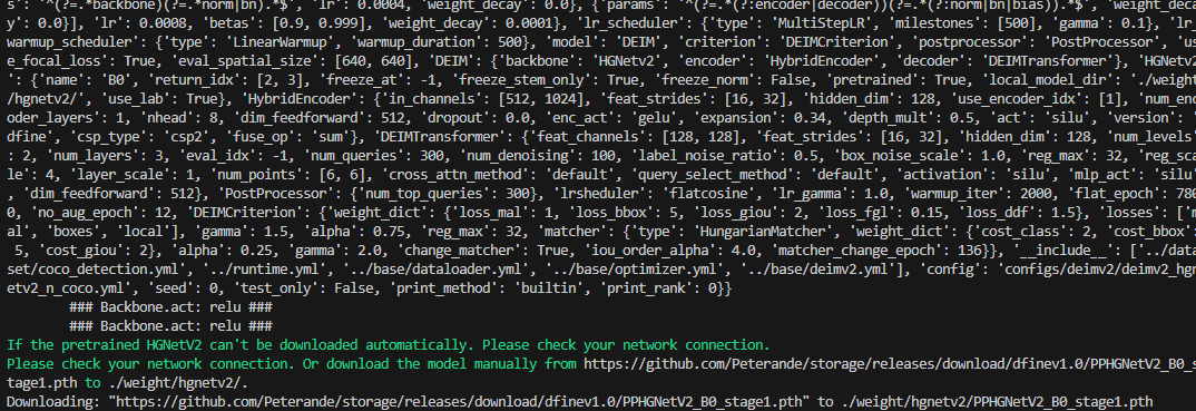 CUDA_VISIBLE_DEVICES=0,1,2,3 torchrun --master_port=7777 --nproc_per_node=4 train.py -c configs/deimv2/deimv2_hgnetv2_n_coco.yml --use-amp --seed=0