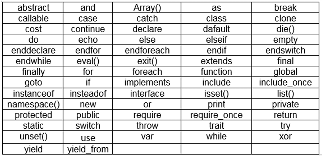 - [2.4.2 PHP 关键字(PHP Keywords)](#2.4.2 PHP 关键字(PHP Keywords))