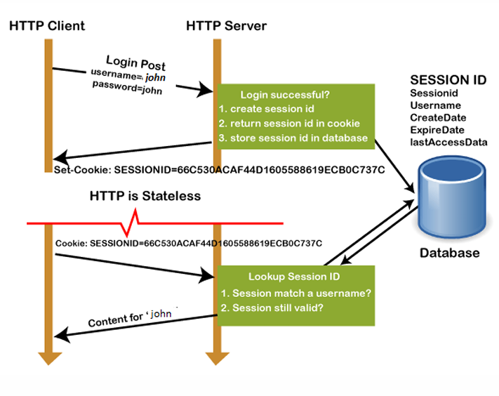 - 创建会话:服务器验证成功,生成一个 SESSION ID,并在数据库/内存里记录该 ID 对应的是用户 "john"。