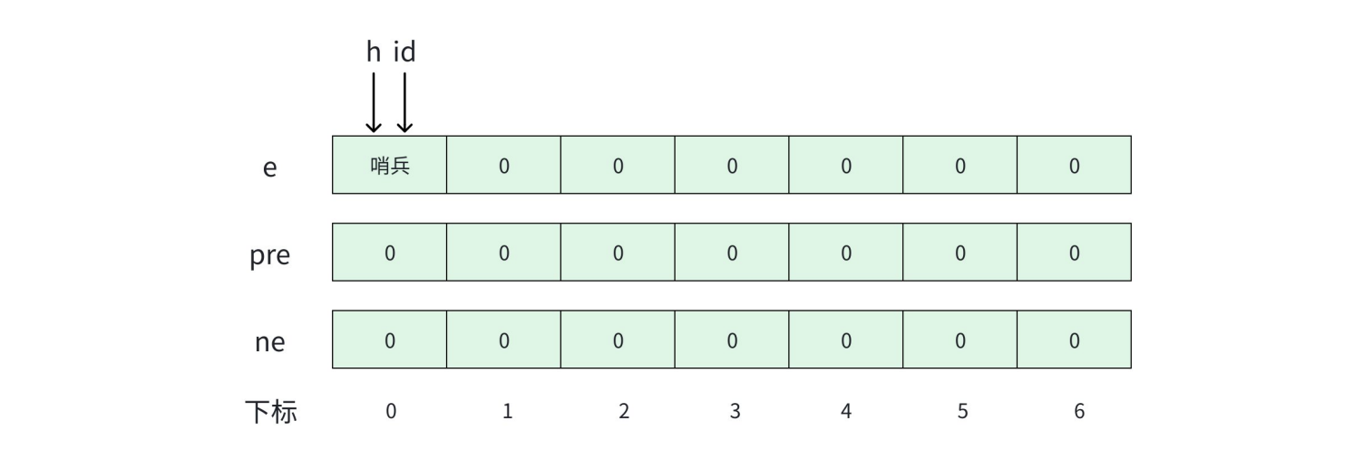 int h; // 头结点--哨兵位