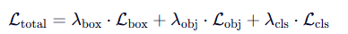 其中权重 λ通常来自超参数配置(如 hyp.scratch.yaml 中 box=0.05, obj=1.0, cls=0.5)。