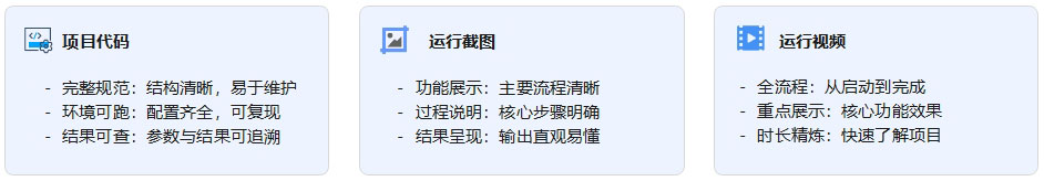 包括完整的项目源代码、演示视频、运行截图,开箱即用。