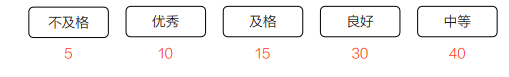 // 叶子节点权值(示例:不及格5、及格15、中等40、良好30、优秀10)