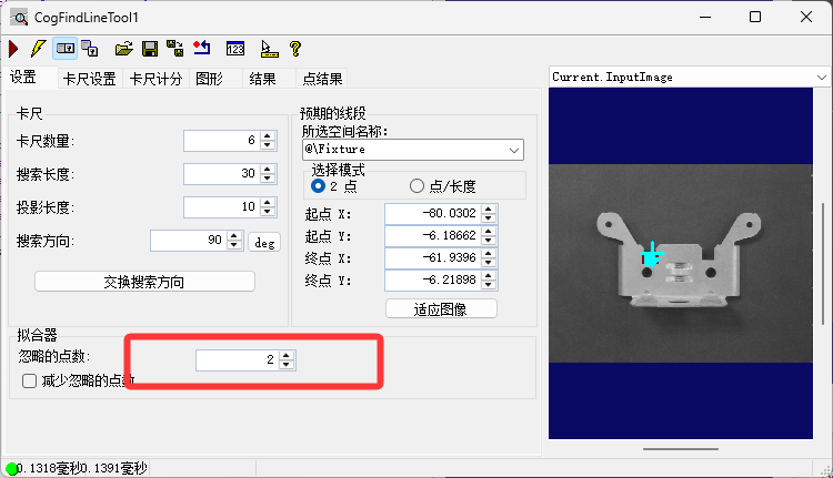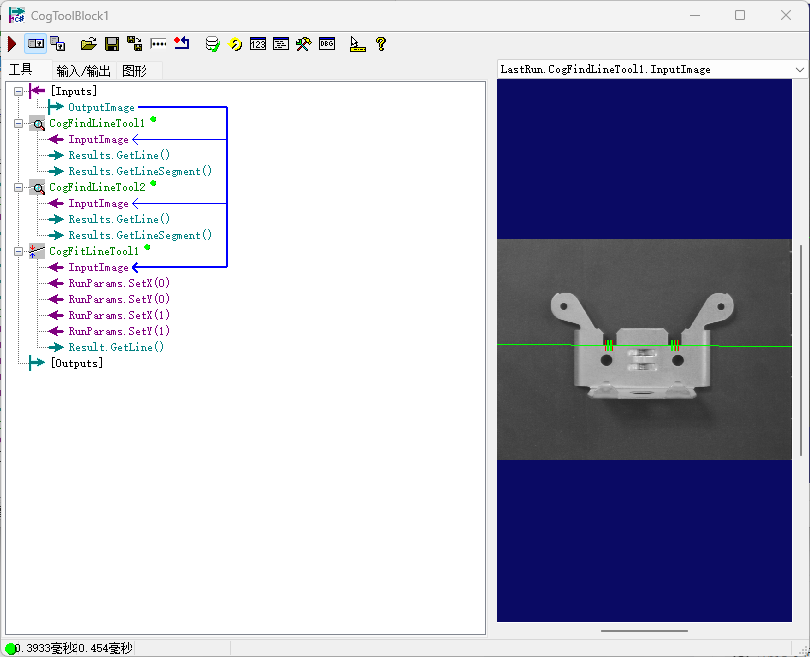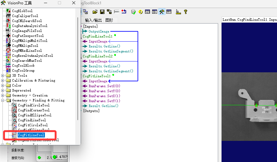由于在图像处理中 有些图像它不能完整的找到一个直线 故用两个找边 通过得出两个找边的有效分数 通过脚本传输给CogFitLineTool 里面