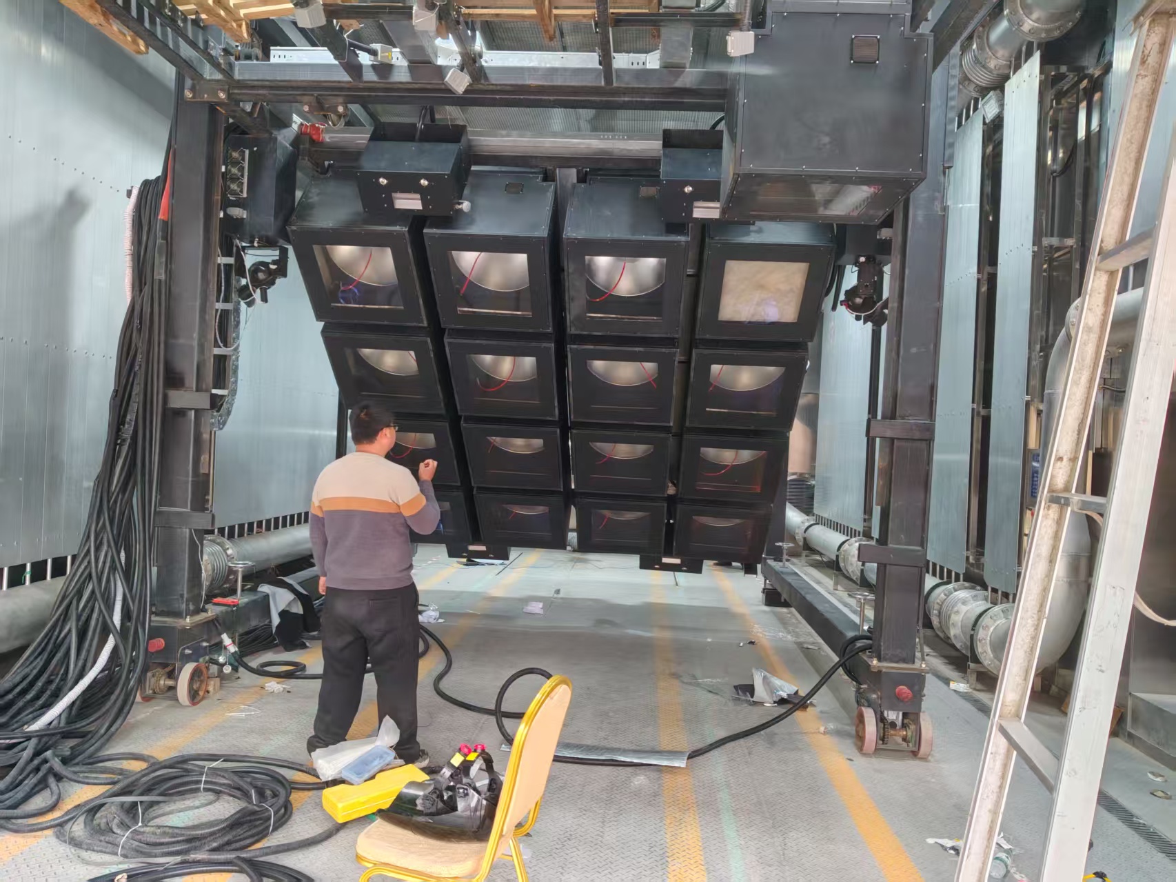该车企建设了步入式全光谱阳光模拟舱,采用金属卤素灯阵列(总功率300kW),顶部+侧面布灯,有效测试区6m×4m。辐照度1200W/m²,不均匀度≤±8%。用于新车上市前的内外饰耐候性验证,将海南暴晒2年的周期压缩至6个月,累计测试超50款车型。