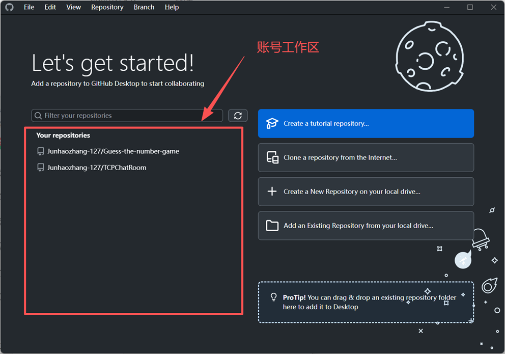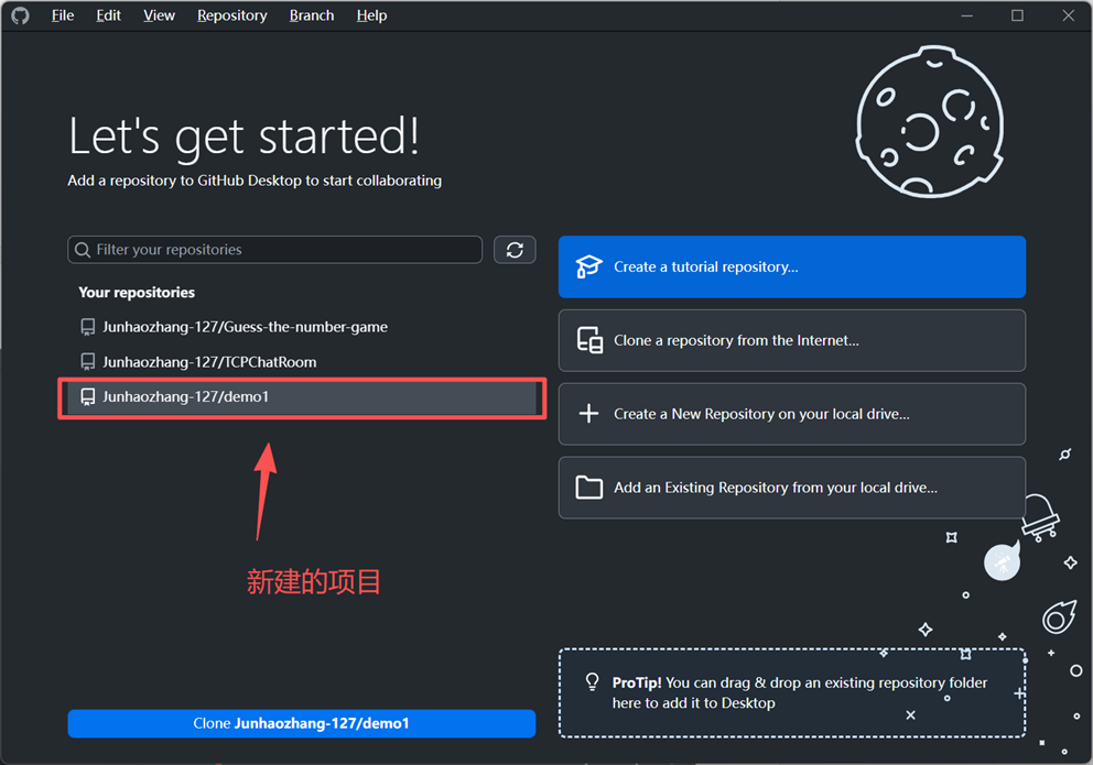 三、打开 GitHub Desktop 并定位远程项目