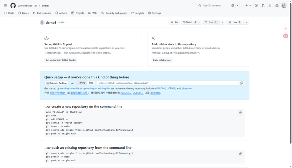 3. 查看仓库创建成功后的页面