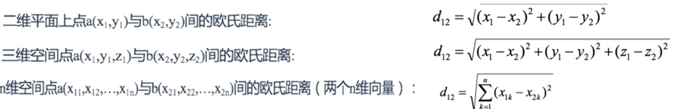 样本的相似性中样本都是属于一个任务数据集的,样本间的距离越近相似度越高。距离有很多种计算方式对此我们先了解最简单的欧式距离。