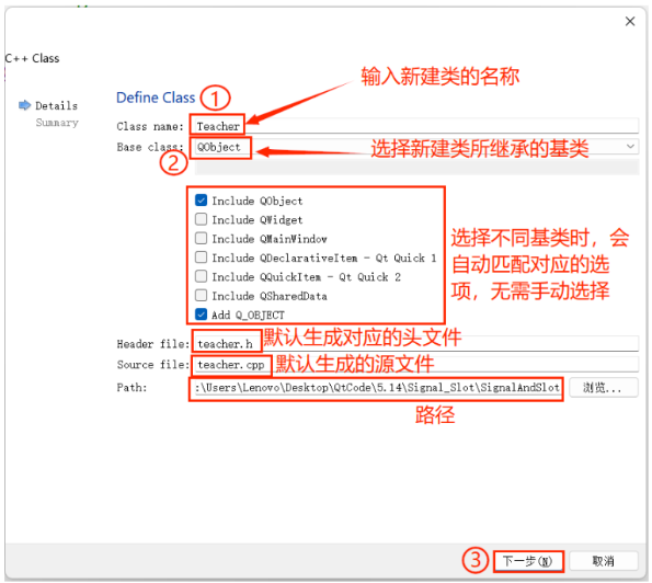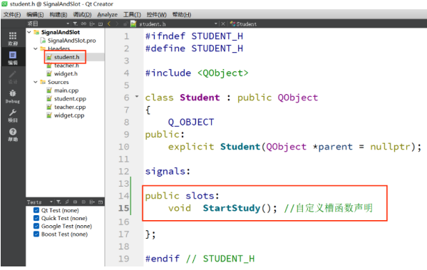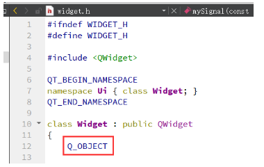 Qt中如果要让某个类能够使用信号槽(可以在类中定义信号和槽函数),则必须要在类最开始的地方写下Q_OBJECT宏(这个宏可以展开很多代码)。如果不加上这个宏,那么编译的时候就会报错。这个宏不需要我们自己手动添加,一般Qt create会帮助我们自动生成