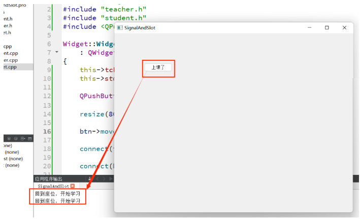 b.在widget.cpp中实现槽函数,并且关联信号和槽