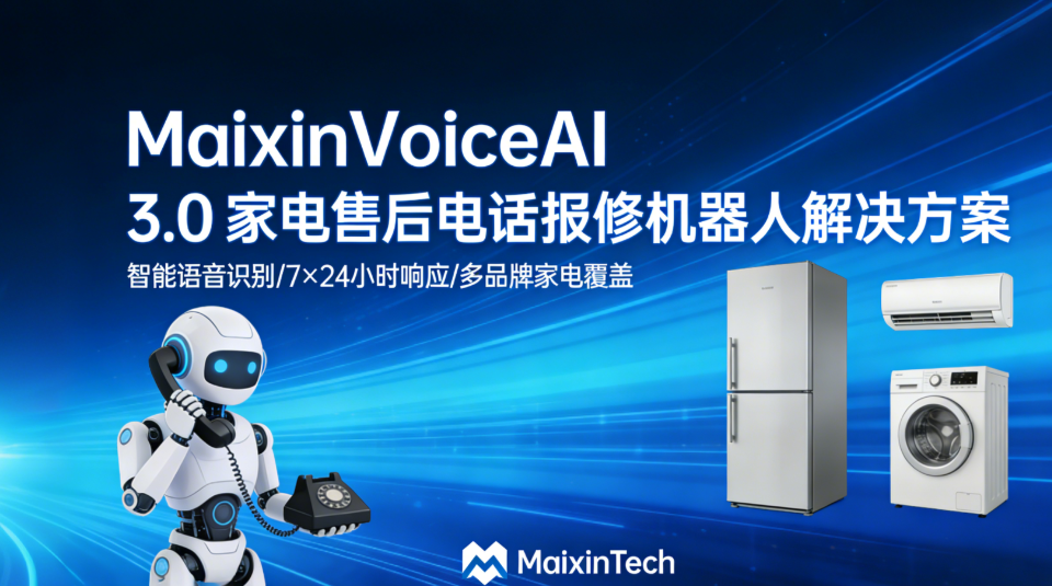在大模型浪潮下,家电售后服务正从"被动响应"向"主动服务"、从"人力驱动"向"AI驱动"转型,上海脉信上海脉信MaixinVoiceAI 3.0家电售后电话报修机器人,以"零代码部署、高精准识别、全流程自动化、人机协同"为核心,精准解决家电企业售后痛点,既降低了企业运营成本,又提升了用户体验与品牌竞争力。