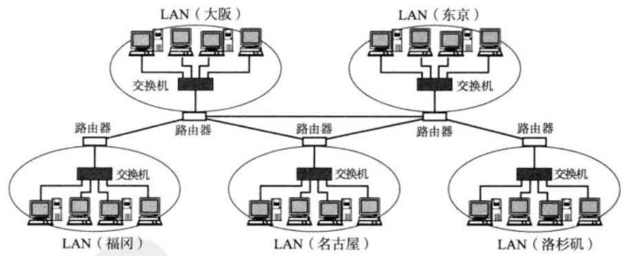 局域网LAN:计算机数量更多了,通过交换机和路由器连接在一起。